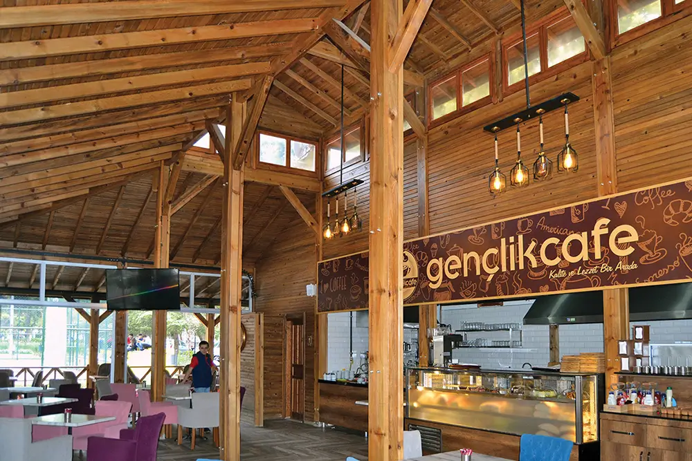 - En dayınıklı ve güvenli yapı ürünlerinden biri olan ahşap, kod ve güvenlik gereksinimlerini karşılarken sağlıklı yaşam ve çalışma ortamı sunar.